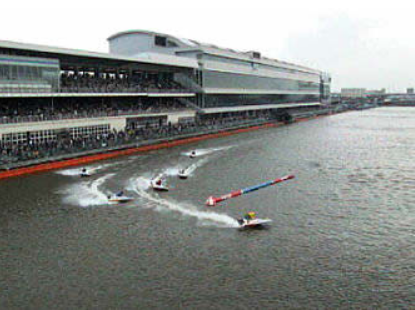 戸田競艇場では、第1ターンマークとスタンドの距離が全国で一番狭い間隔になっています。